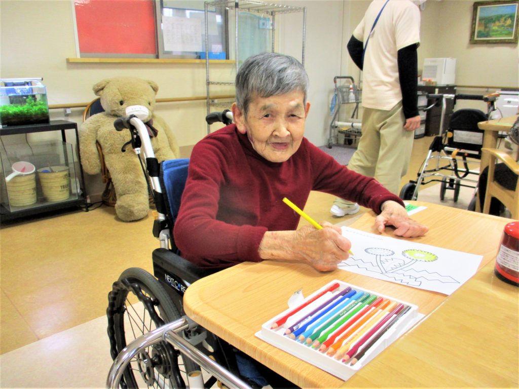 別の机では。。。 塗り絵を楽しまれるお姿がありました??