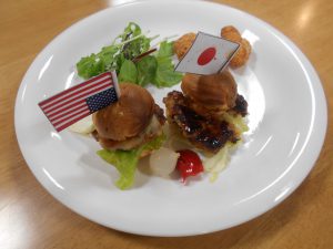 ハンバーガーについている旗はスタッフの手作りです頑張りました?