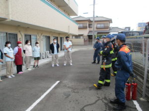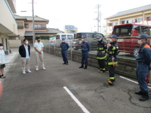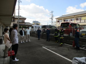2階から出火したと仮定し、ゲスト様を西側非常階段から数名ずつ誘導しました。