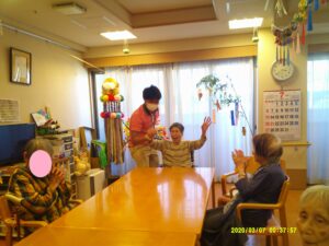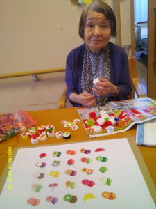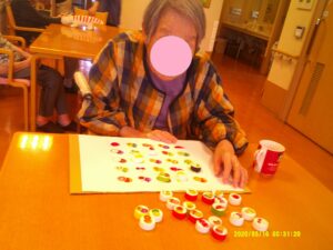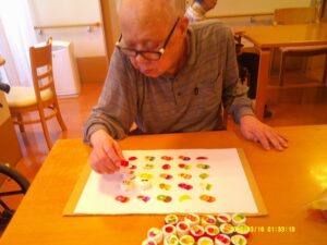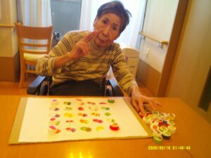 ゲスト様と共同で制作していた果物合わせのパズルが完成し、その作品を楽しんで頂きました。