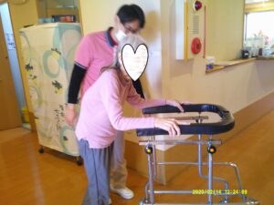 公園散歩しない日はグループホーム3Fの廊下散歩をしています。
