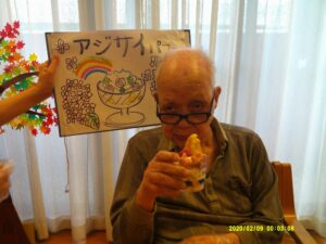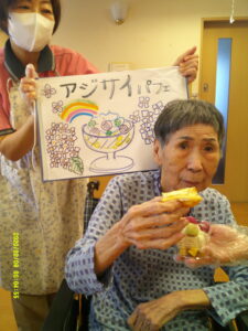 今日はアジサイパフェを味わっていただき楽しいひと時を過ごしました。
