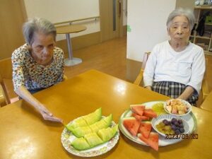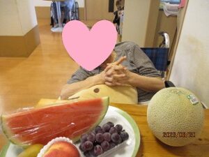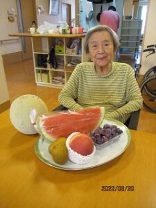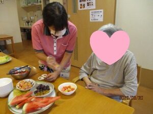 旬のフルーツを用意して、お好きな物を選んで食べて頂きました。