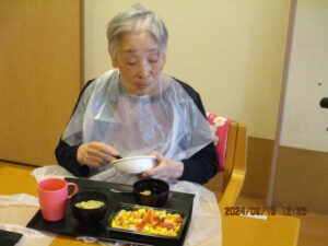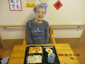 9月13日 仕出しの海鮮チラシで、早目の敬老の日をお祝いしました。いつものことながら、食の細い方も完食でした。