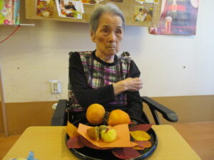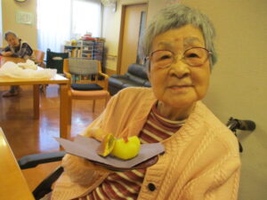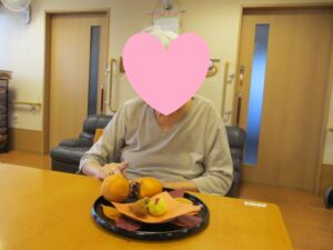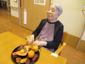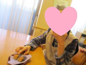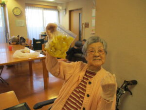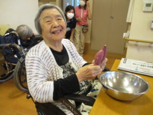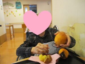 ゲスト様に御手伝い頂き、サツマイモの茶巾団子と干し柿を作りました。
