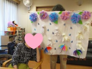 ゲスト様にも協力して頂き、6月の壁絵を製作しました。