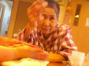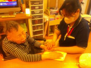 優しく手のツボをなでながらマサージをしました。