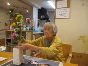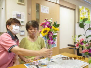 お花を生けることで心が癒され、参加者同士の交流も楽しく、和やかな雰囲気の中で過ごすことができました。特に、カスミソウやデンドロビウムなど普段あまり触れることのない花材を使えたのが新鮮でした。