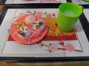 おやつは、ひな祭りに因んだ「春のお菓子」をお出ししました。