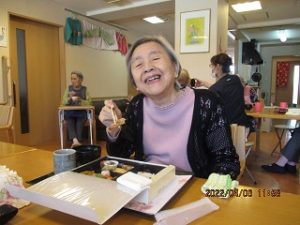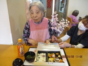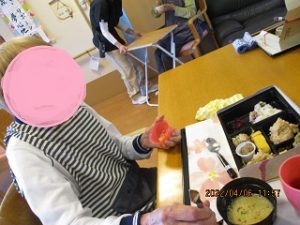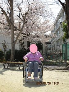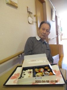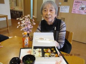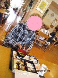 4月6日、お花見弁当レクを行い、昼食後近隣の公園にてお花見散歩。