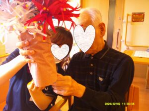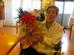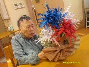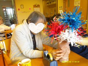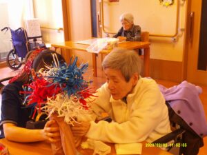 ヒガンバナ作りを楽しんでいらっしゃっていました。