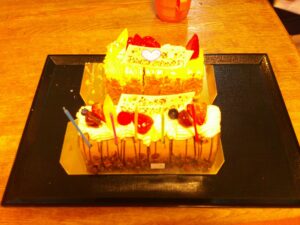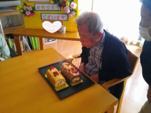 ゲスト様と職員と一緒にお祝いの歌を唄って、最後に全員で美味しいケーキ🎂を頂きました!(^^)!美味しかった😊😊😊