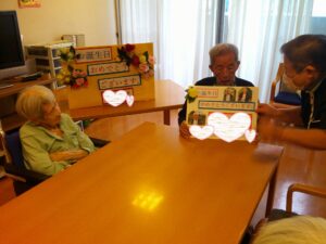 職員から手作り誕生日カードとサプライズのプレゼントを渡され少し恥ずかしそうな主役様💛