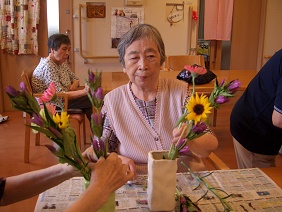 今日は、2階・3階で合同のフラワー教室を行いました?