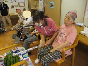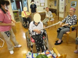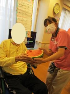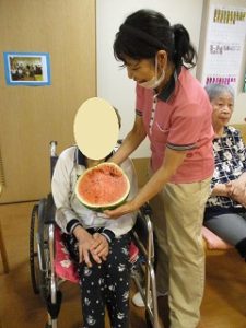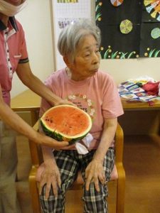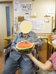 先日は、おやつのスイカをご紹介しましたが、今回は毎年恒例のスイカ祭です。