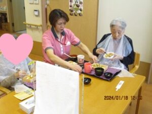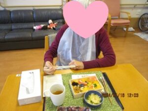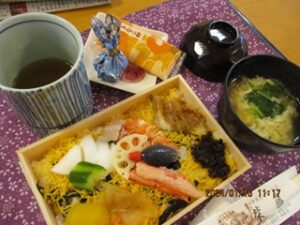 昼食の海鮮チラシとおやつの二本立てで、新年会を行いました。