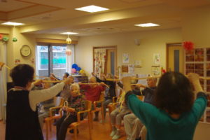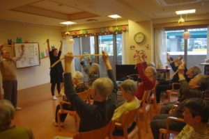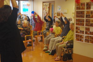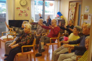 皆さんこんにちは? この日は、ボランティアさんによる歌体操を行いました?