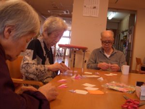 豊中市のいきいき長寿フェアの作品を、ゲスト様とスタッフで手作りしています。
