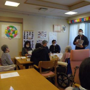日々のゲスト様の行事活動をビデオで流したり、ご家族様・民生委員さんからの