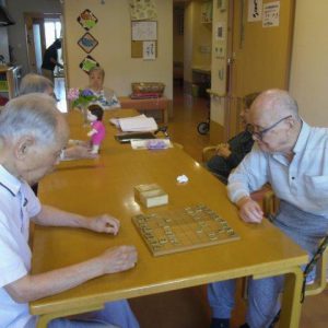 将棋をされるゲスト様、スタッフと一緒に食材のチェックのお手伝いをされる方など