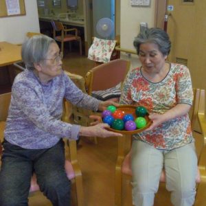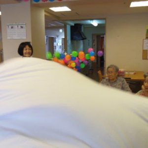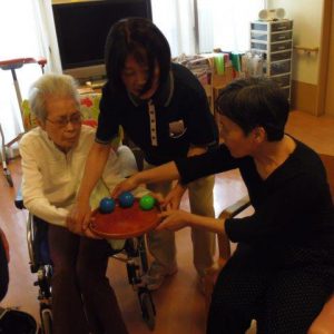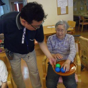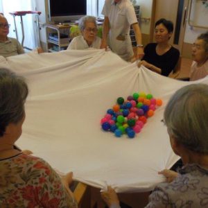 この後、皆さんでラジオ体操をしてから、ボール遊びレクを行いました?