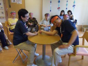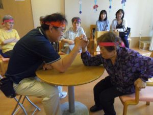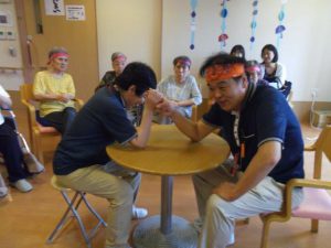次の種目は、スタッフさんを交えての腕相撲で、皆さん大いに盛り上がりました