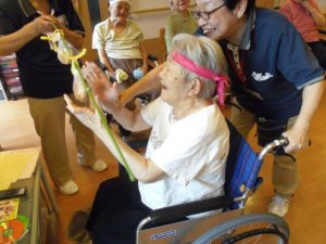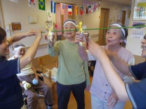 この日は、ゲスト様皆さんで運動会を行いました。ご家族の方も参加され、運動会のスタートです