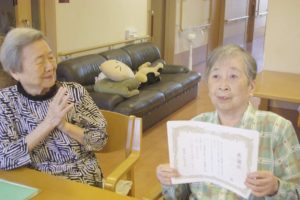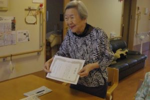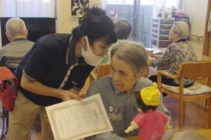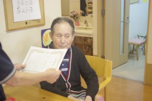 9月21日、敬老レクを行い毎年恒例の感謝状をお渡しし、ゲストの皆様のご長寿を