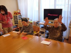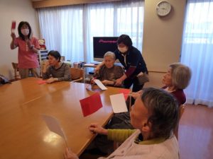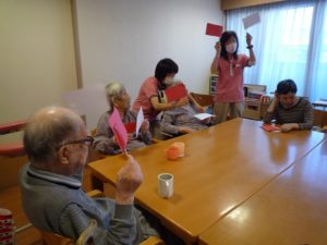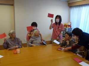 今日は、にぎやかに「?紅白旗揚げゲーム?」を行いました?
