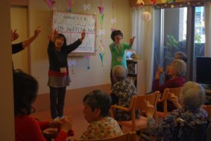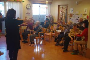 毎月恒例の歌体操、ボランティアの方々に来訪して頂き、
