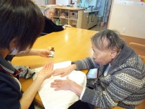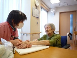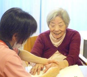 ハンドセラピーは、皮膚を撫でるように柔らかく触れ、触覚神経を刺激することで「快適ホルモン」とも言われるオキシトシンの分泌が促され、それにより穏やかさと安心感をもたらし、施術する側と受ける側との間に、親密感と信頼感が生みだされます。