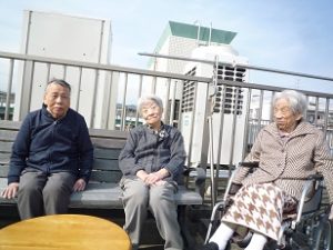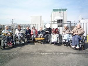 今日は、天気も良いので、ゲスト様全員で屋上へ外気浴に行きましょう?