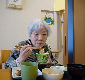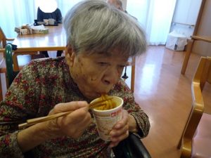 お好みのカップ麺を昼食と共に召し上がって頂きました。
