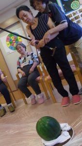 まずは、ゲスト様皆さんで、すいか割りを行います?