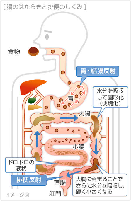 このような流れで大便が作られ、反射と共に排便されていきます。
