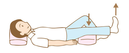 仰向けの姿勢で膝の裏にタオルやクッションをいれます。