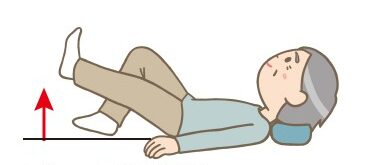 仰向けの姿勢で片脚を伸ばし、もう片方の膝を曲げます。
