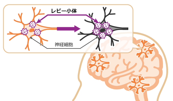 原因はまだ完全に解明されていませんが、脳内にレビー小体と呼ばれる異常なたんぱく質が溜まり、神経細胞が破壊され、認知症の症状が現れていきます。