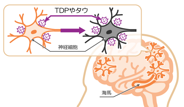 脳の中のタンパク質(タウタンパクやTDP-43)の性質が変化して蓄積され、前頭葉や側頭葉に萎縮が生じてしまうといわれています。なぜたんぱく質が蓄積してしまうのかは不明です。