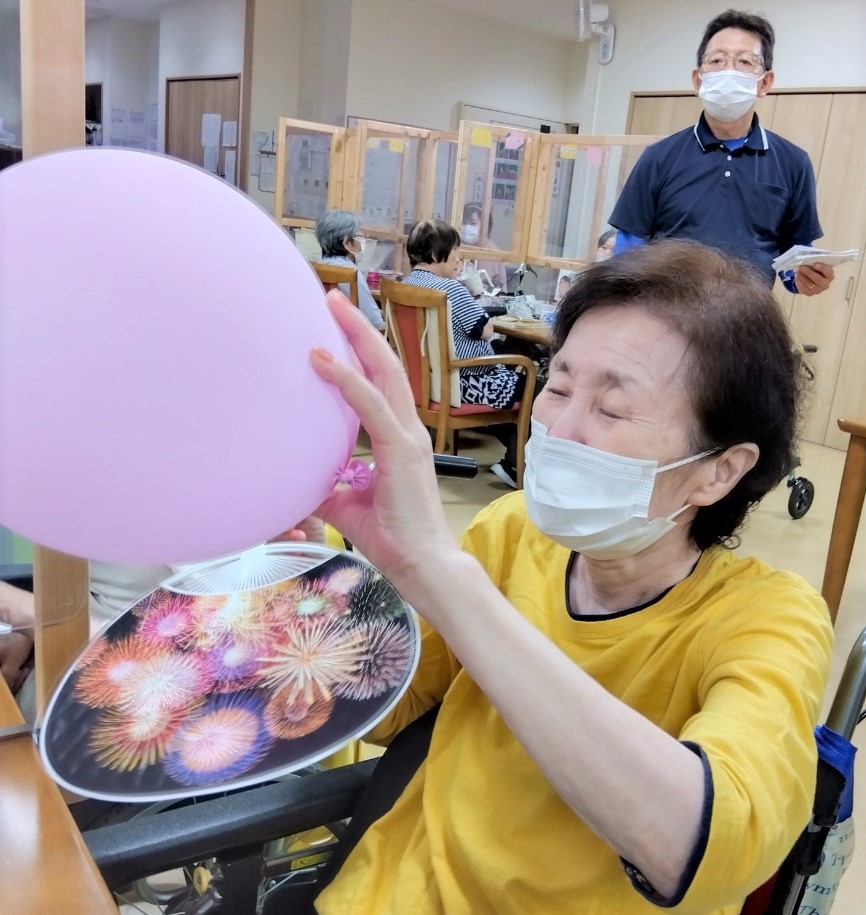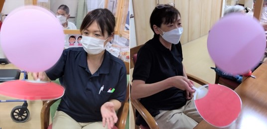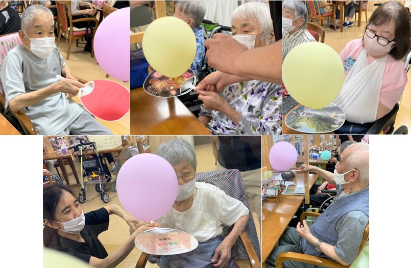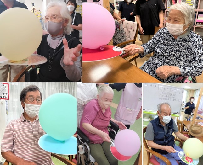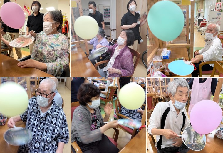 ルールは、一人ずつうちわで風船をポンポンとすくう。