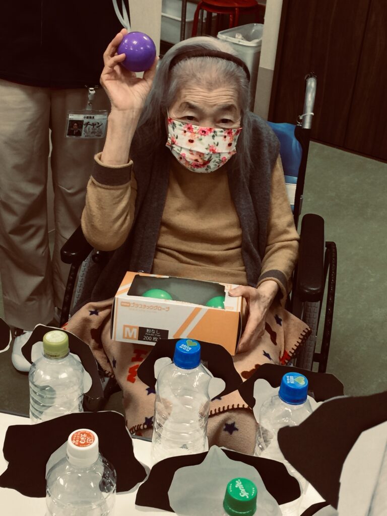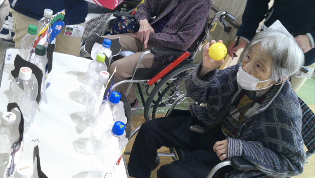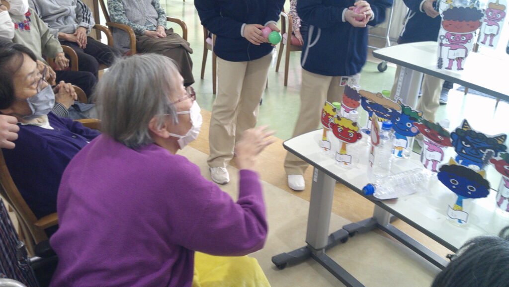 いえいえ、無病息災を願って鬼に向かってボールを投げてもらいました