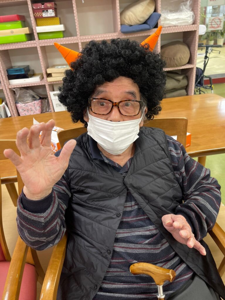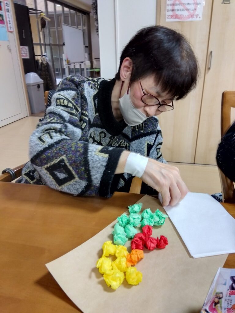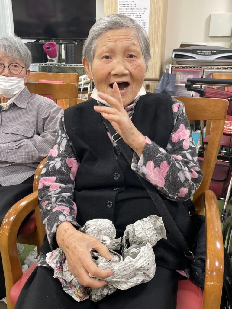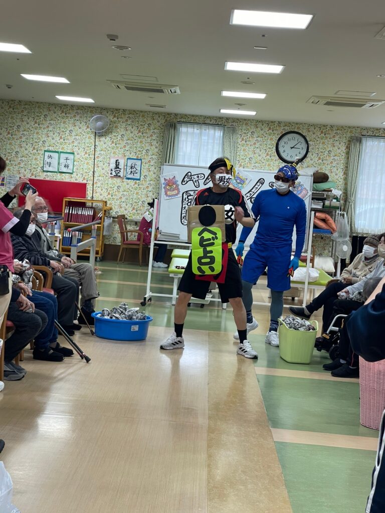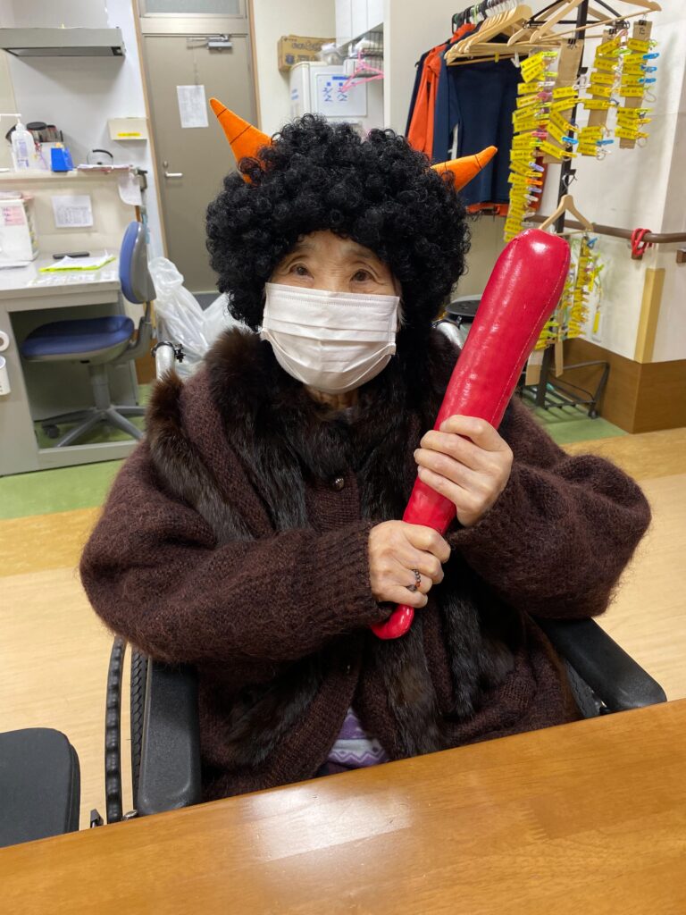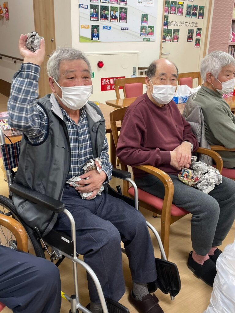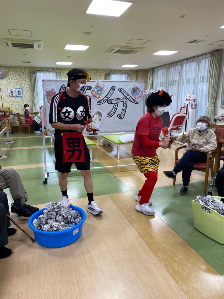 その次は新聞紙で大きめに丸めて作った豆まきです。