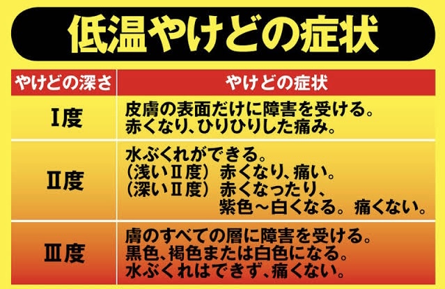 カイロや湯たんぽを使っている人も多いと思います。そこで今回は冬場に注意してほしい『低温やけど』についてお話していきます✨
