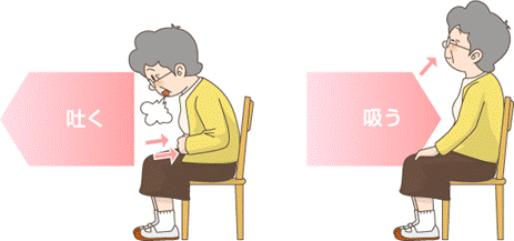 鼻から息を吸ってお腹を膨らませ、ゆっくり息を吐きながらお腹をへこましていく。