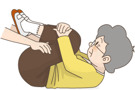両膝を胸に近づけて5秒間静止する。次に、軽くお尻が浮くように反動をつけて揺り動かします。両膝が無理なら片脚ずつでも大丈夫です。