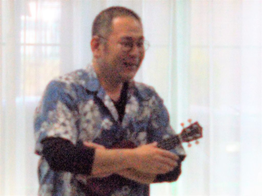 ウクレレ演奏で ♪ 野に咲く花のように ♪ の歌から始まり……ゲストの皆さんは何が始まるかと興味津々?
