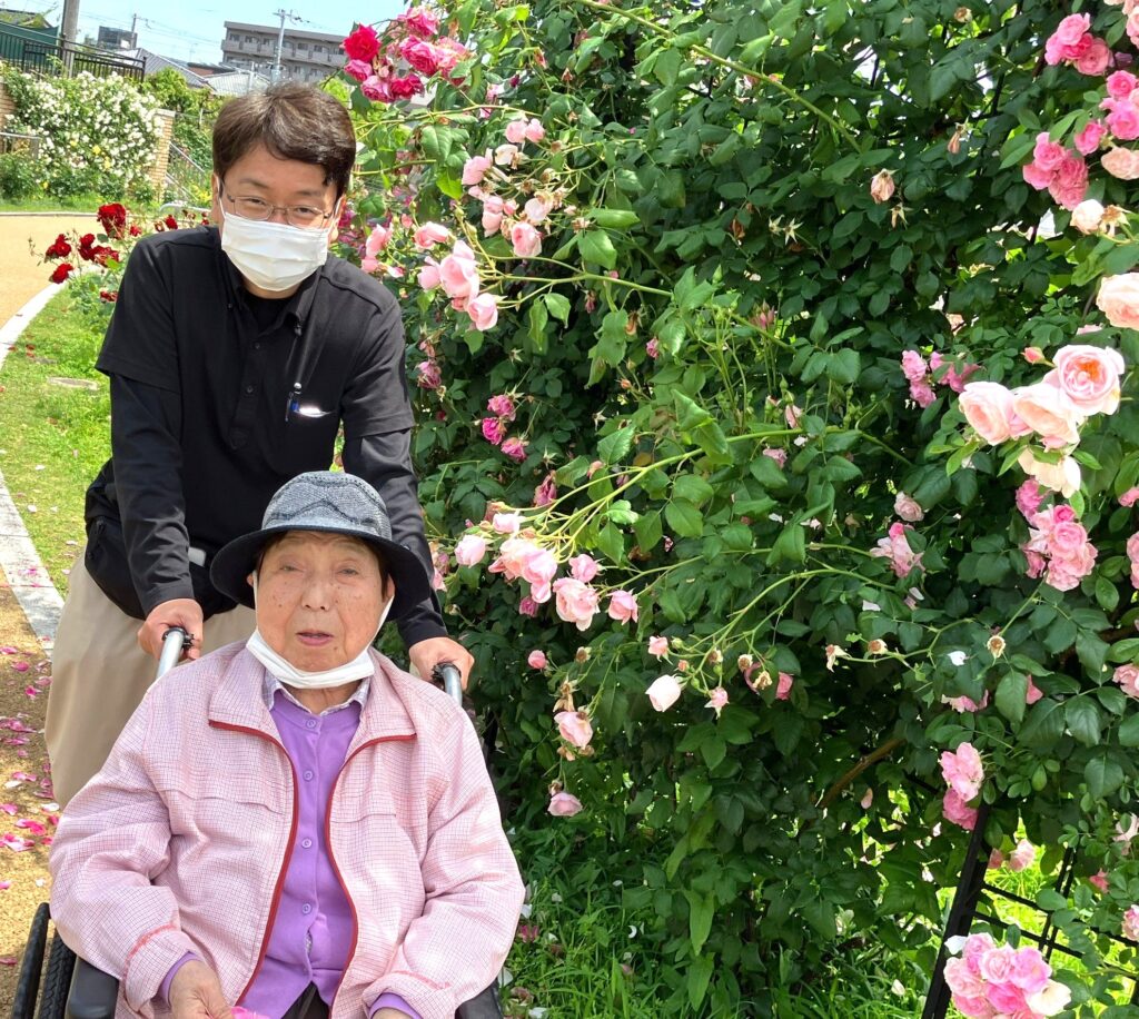 バラを鑑賞し、皆様ニコニコと笑顔でしたね