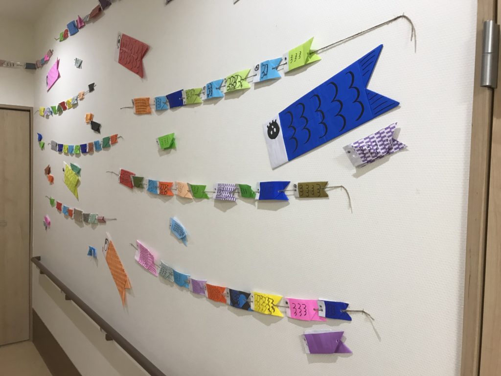 また、いつものトイレ前ギャラリーをはじめそこここの壁には"鯉のぼり”を飾っています。