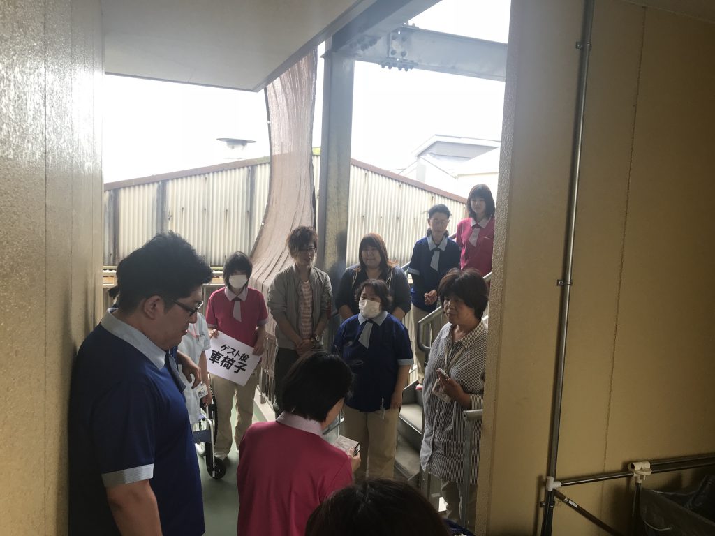 それぞれの持ち場を決めてスタッフ一同真剣に避難訓練をしました。?