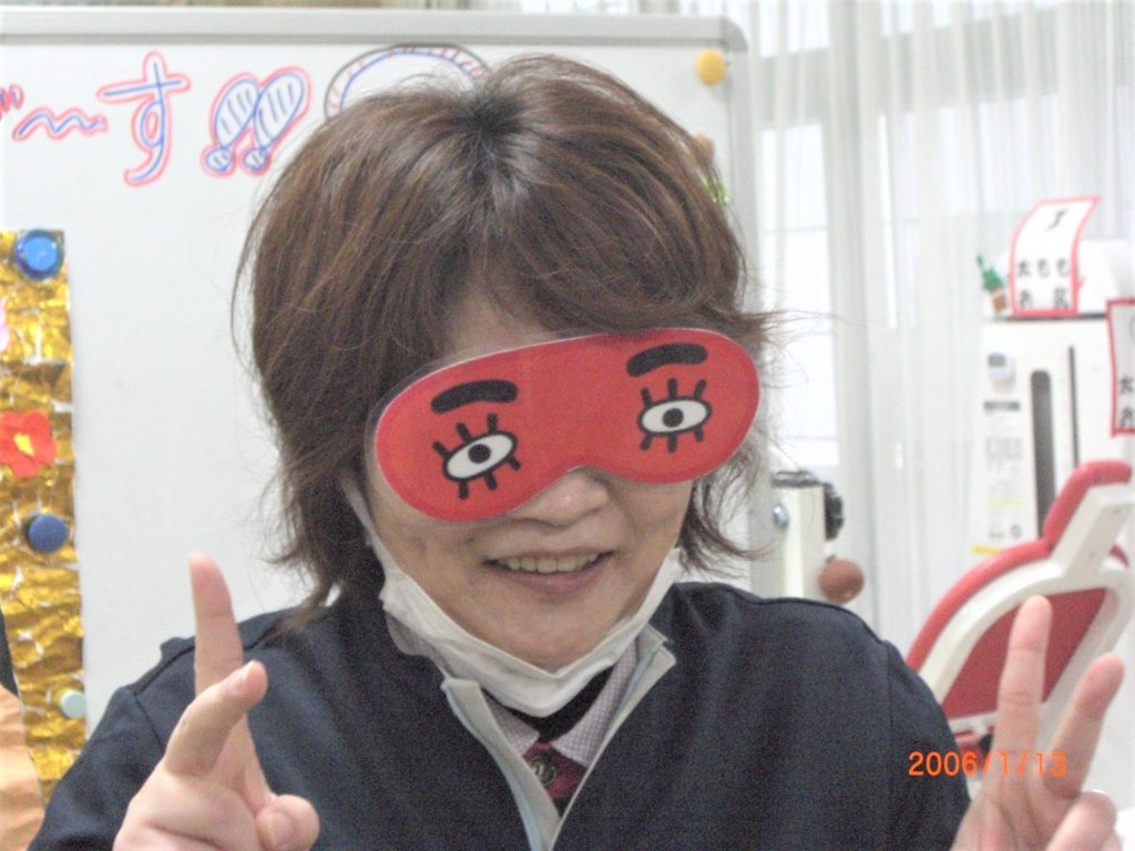 目隠しをしていざ挑戦です。なんかめっちゃアイマスクが似合ってますね。